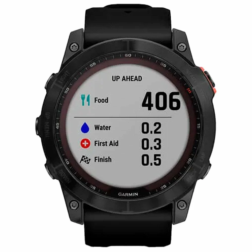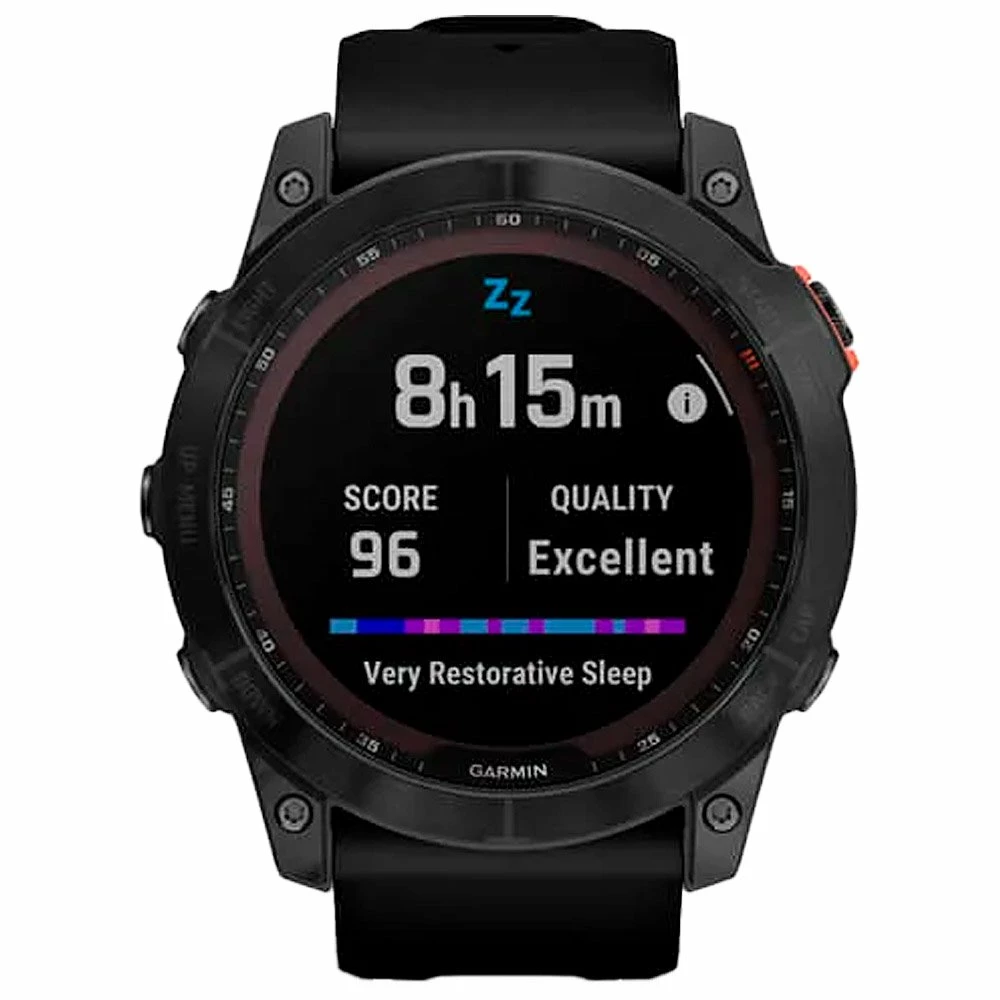 La FĂ©nix 7X Solar Edition est une montre GPS haut de gamme conçue par Garmin qui offre une belle autonomie, rallongĂ©e par la prĂ©sence d’un capteur solaire. Elle intègre un verre Power Glass rĂ©sistant aux chocs, Ă l’eau et Ă la chaleur et une mĂ©moire interne de 16 Go. L’écran tactile et les boutons offrent une utilisation intuitive, rĂ©active et la montre prĂ©sente diverses fonctionnalitĂ©s très pratiques lors de vos activitĂ©s sportives comme au quotidien. Les fonctions classiques d’heure, de date, rĂ©veil, chronomètre, minuteur et heure de lever/coucher du soleil sont prĂ©sentes. Sont Ă©galement incluses les fonctions GPS, captation de la frĂ©quence cardiaque en continu et au repos, respiration, suivi du stress et suivi avancĂ© du sommeil. L’option Smart Notification vous permet de recevoir vos messages, emails et alertes directement sur la montre.Â